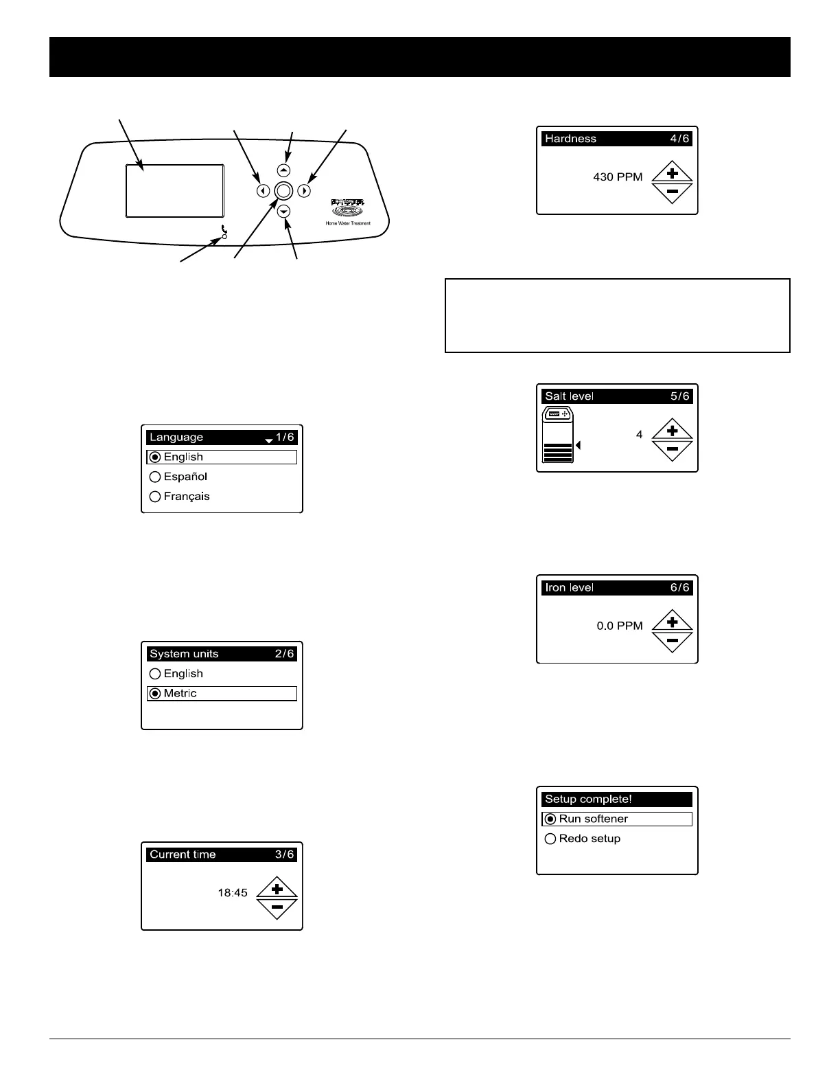 7. HARDNESS Press the UP (5) or DOWN (6) but-