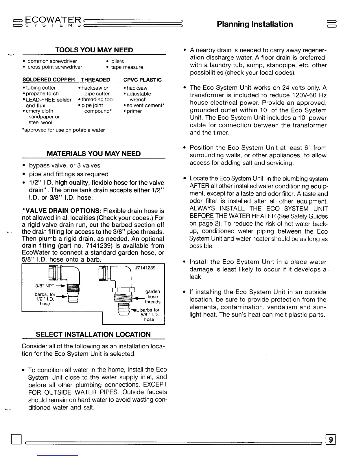 EcoWater R30 - SELECT INSTALLATION LOCATION