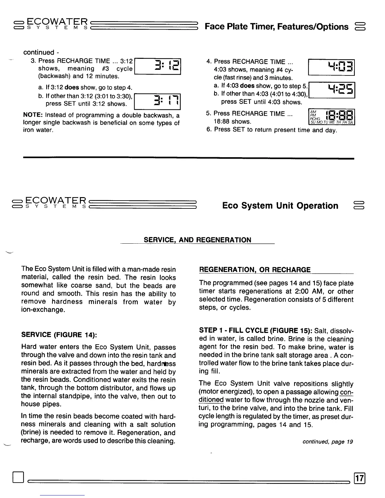 EcoWater R40 - ECO SYSTEM UNIT OPERATION AND SERVICE; SERVICE AND REGENERATION OVERVIEW; FILL CYCLE EXPLANATION