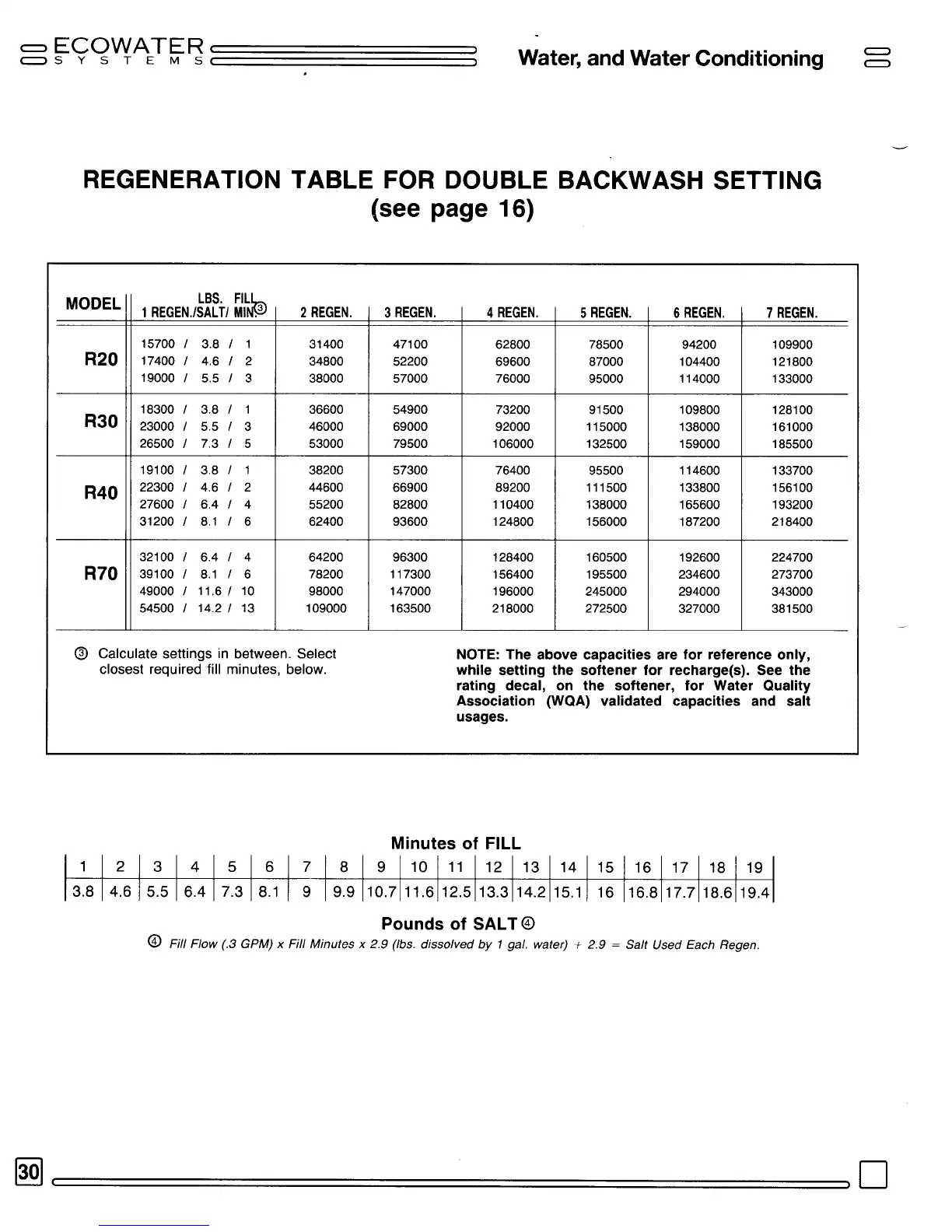 EcoWater R40 - Regeneration Table for Double Backwash Setting