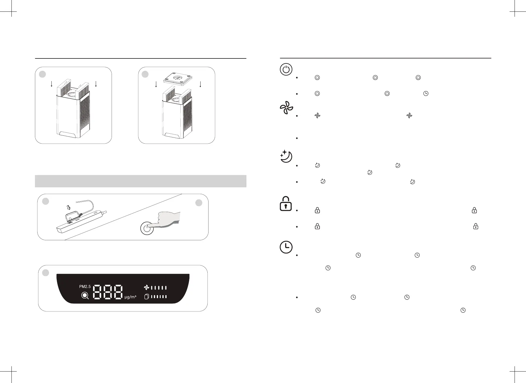 Stop touch, the machine operate with current air speed gear, the display restores PM2.5 value