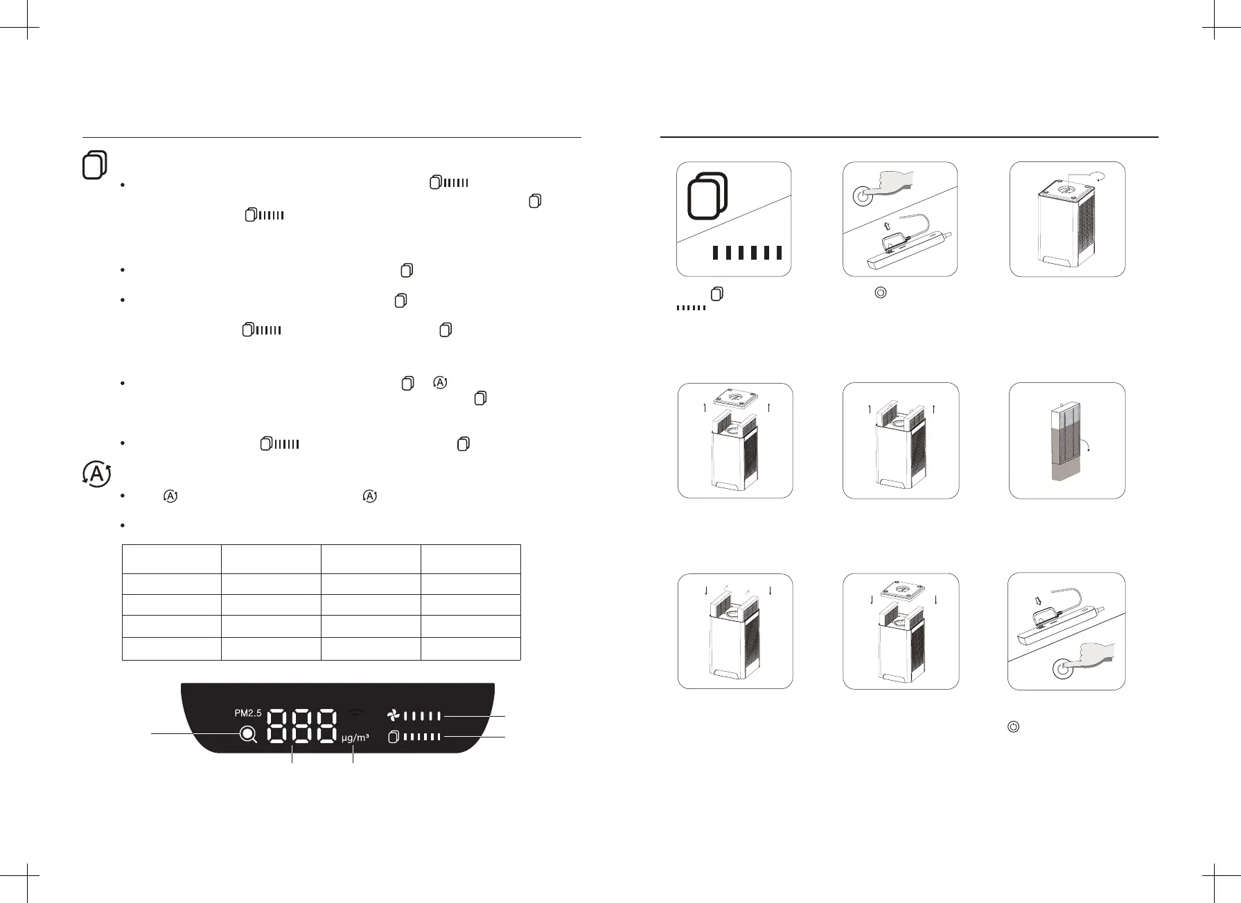 The service life of the lter is 3000 hours, the Filter life indicator “ “ is reduced by one