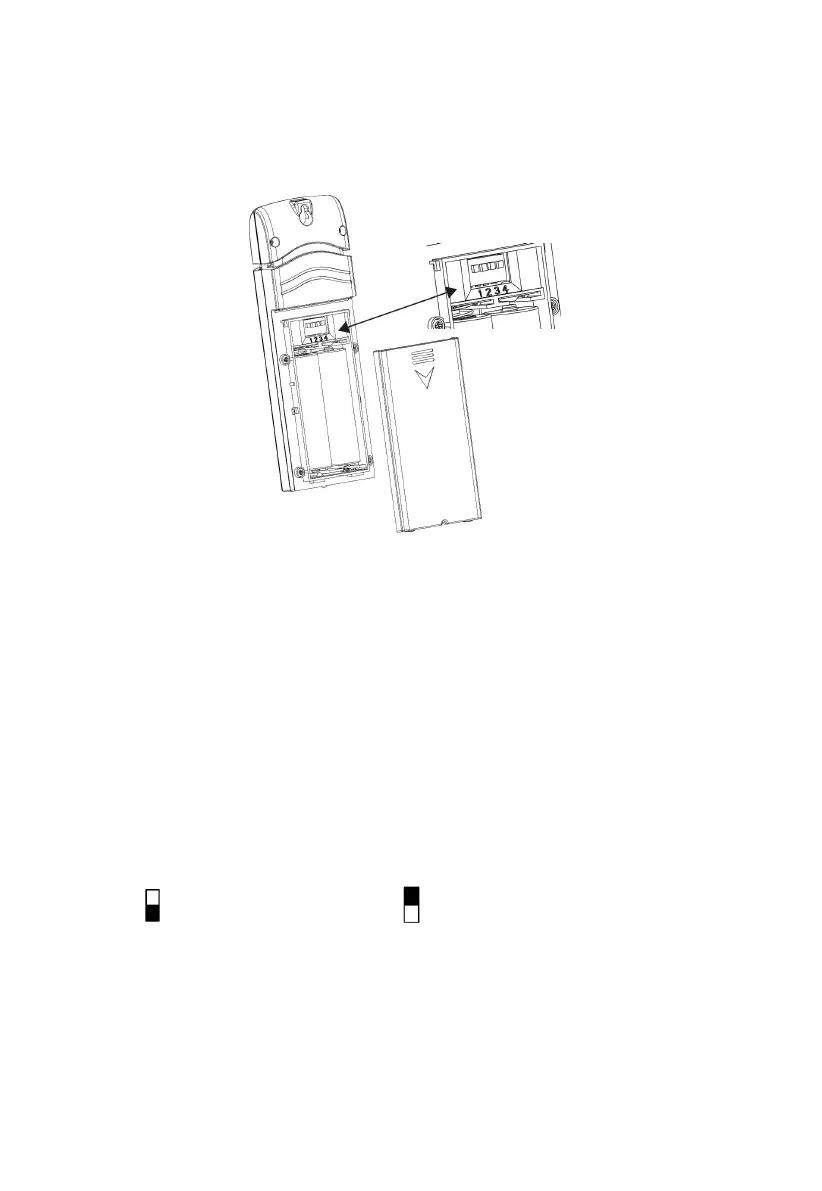 2. BEFORE inserting the batteries, locate the dip switches on the