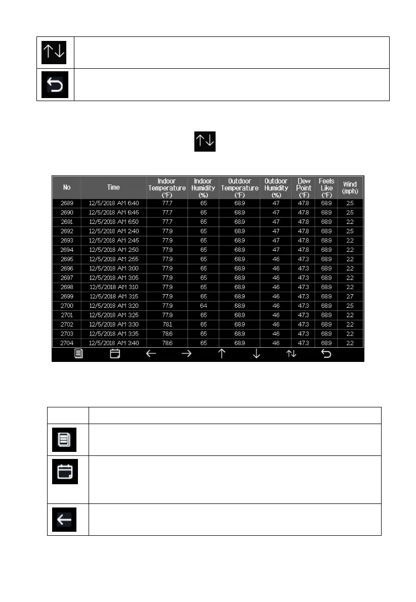 Press this key to enter particular page of the history data. Each