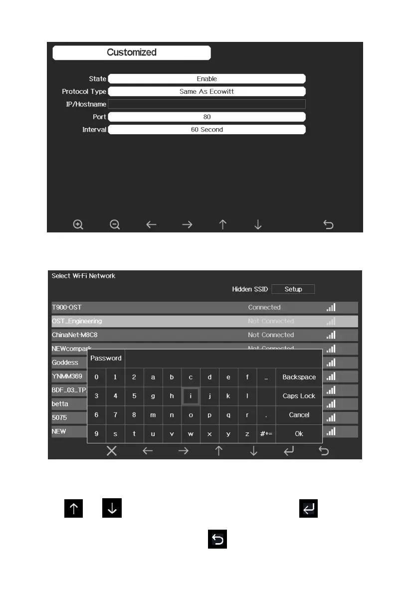 Press or key to select the Wi-Fi network. Press key to