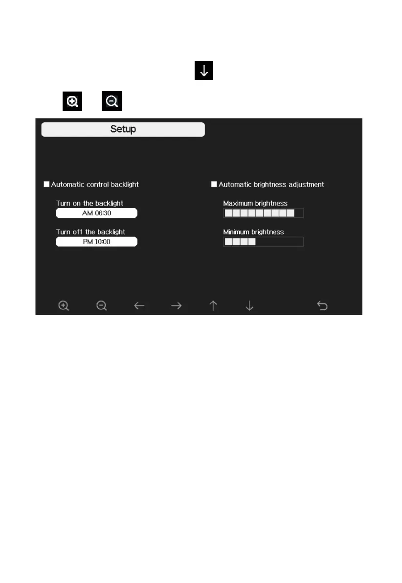 While in Menu Setting Mode, press key to select Backlight Setup field,