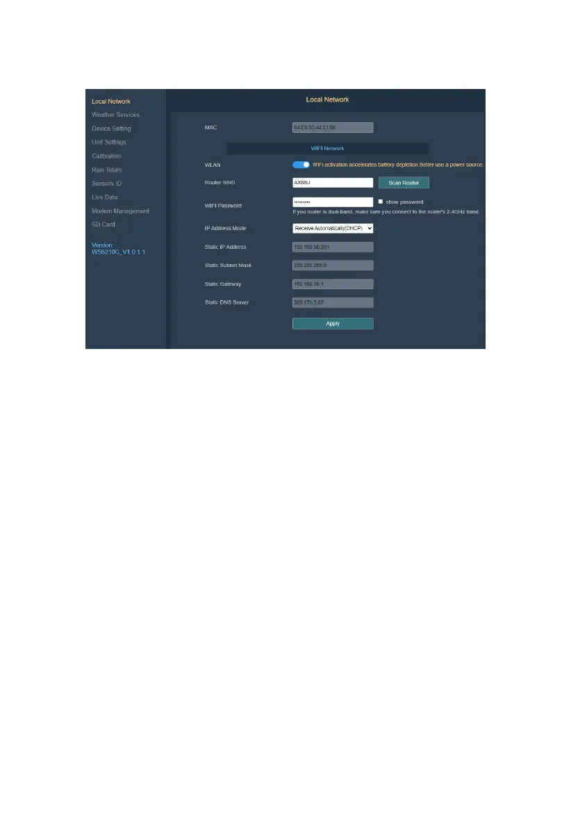 (3) IP Address Mode: Receive Automatically (DHCP) or Static