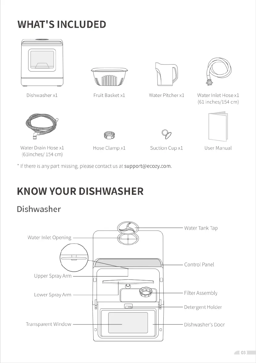 Ecozy DW01 - Whats Included; Know Your Dishwasher Components