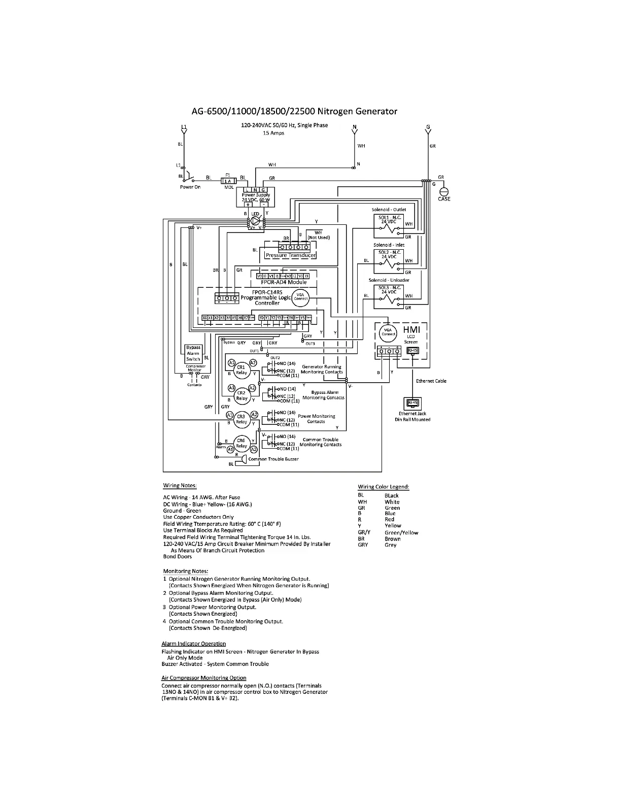 ECS Electronics AdvancedIQ AG-6500 - Wiring Diagrams; AG-6500;11000;18500;22500 Nitrogen Generator Wiring