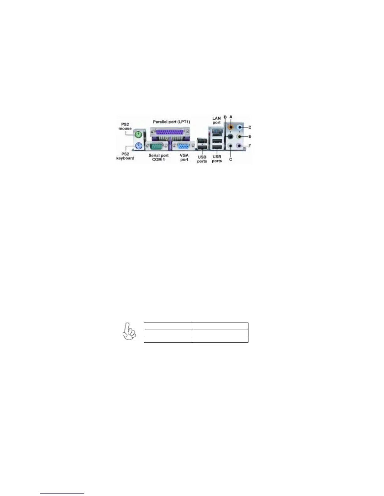PS2 Mouse Use the upper PS/2 port to connect a PS/2 pointing device.