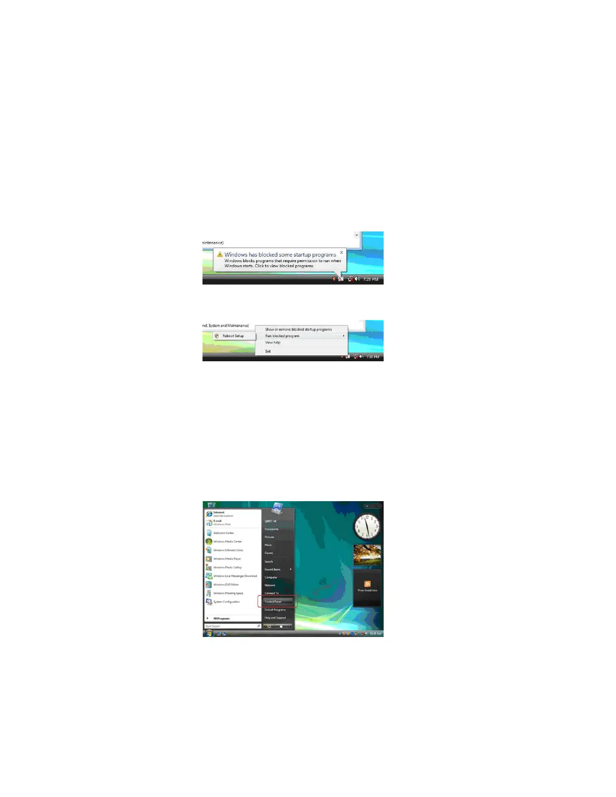 Windows Vista will block startup programs by default when installing drivers after the