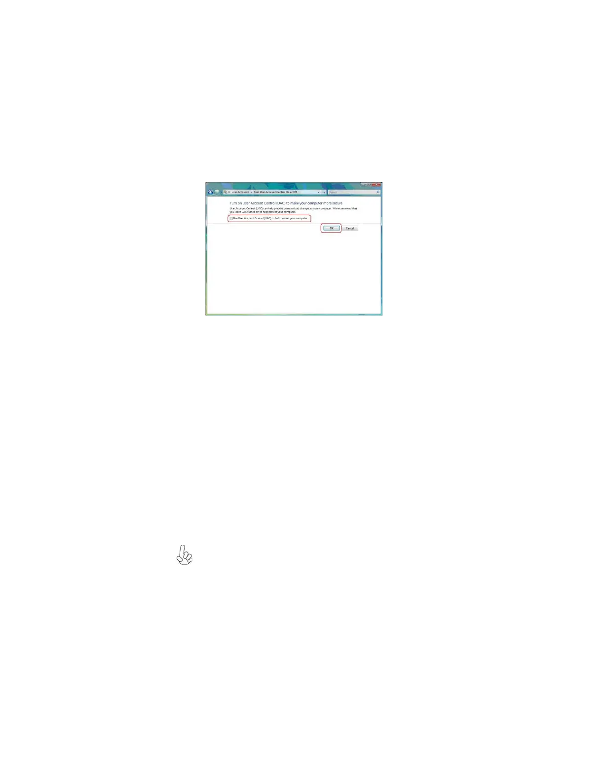 5. Disable User Account Control (UAC) to help protect your computer item and
