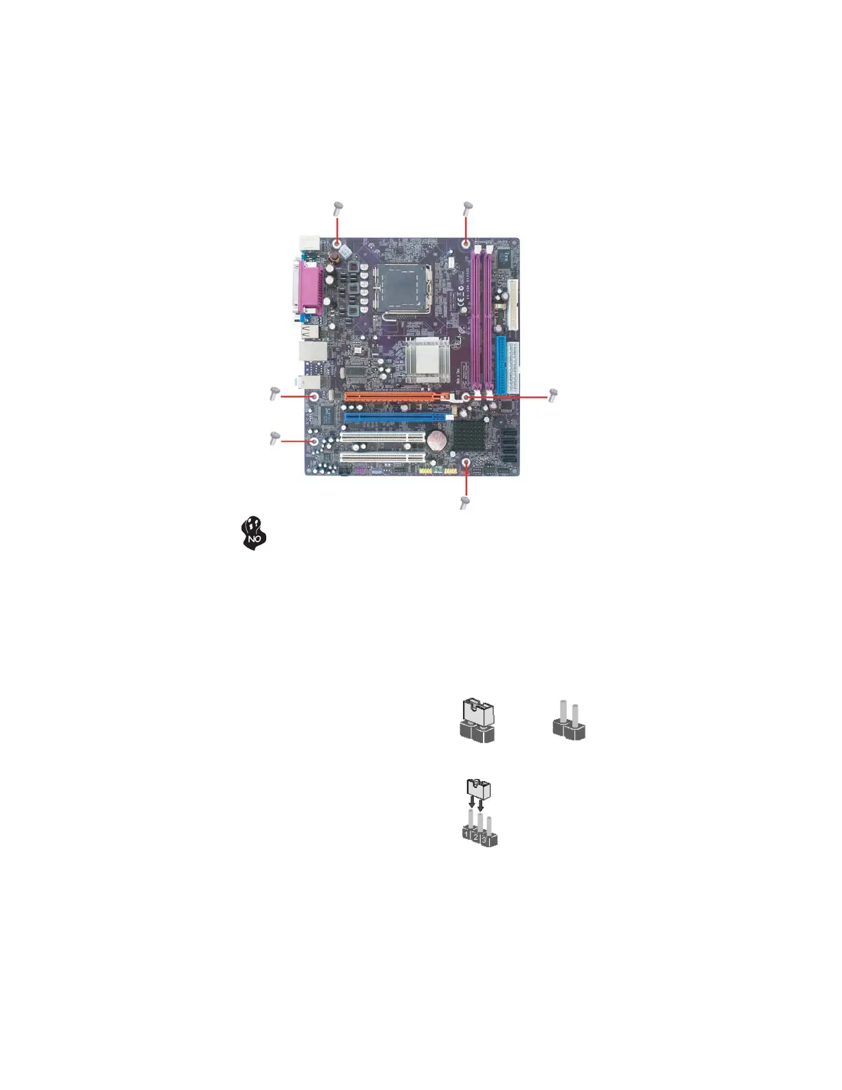 Do not over-tighten the screws as this can stress the motherboard.