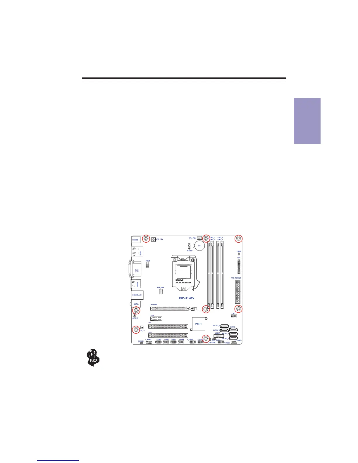 holes in the motherboard. Place the motherboard over the mounting brackets and