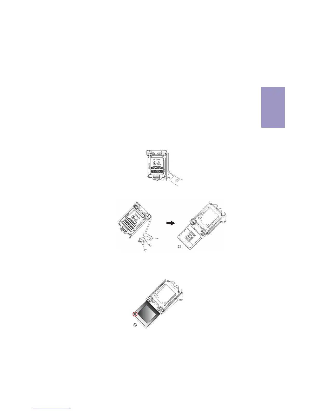 • The following illustration shows CPU installation components.