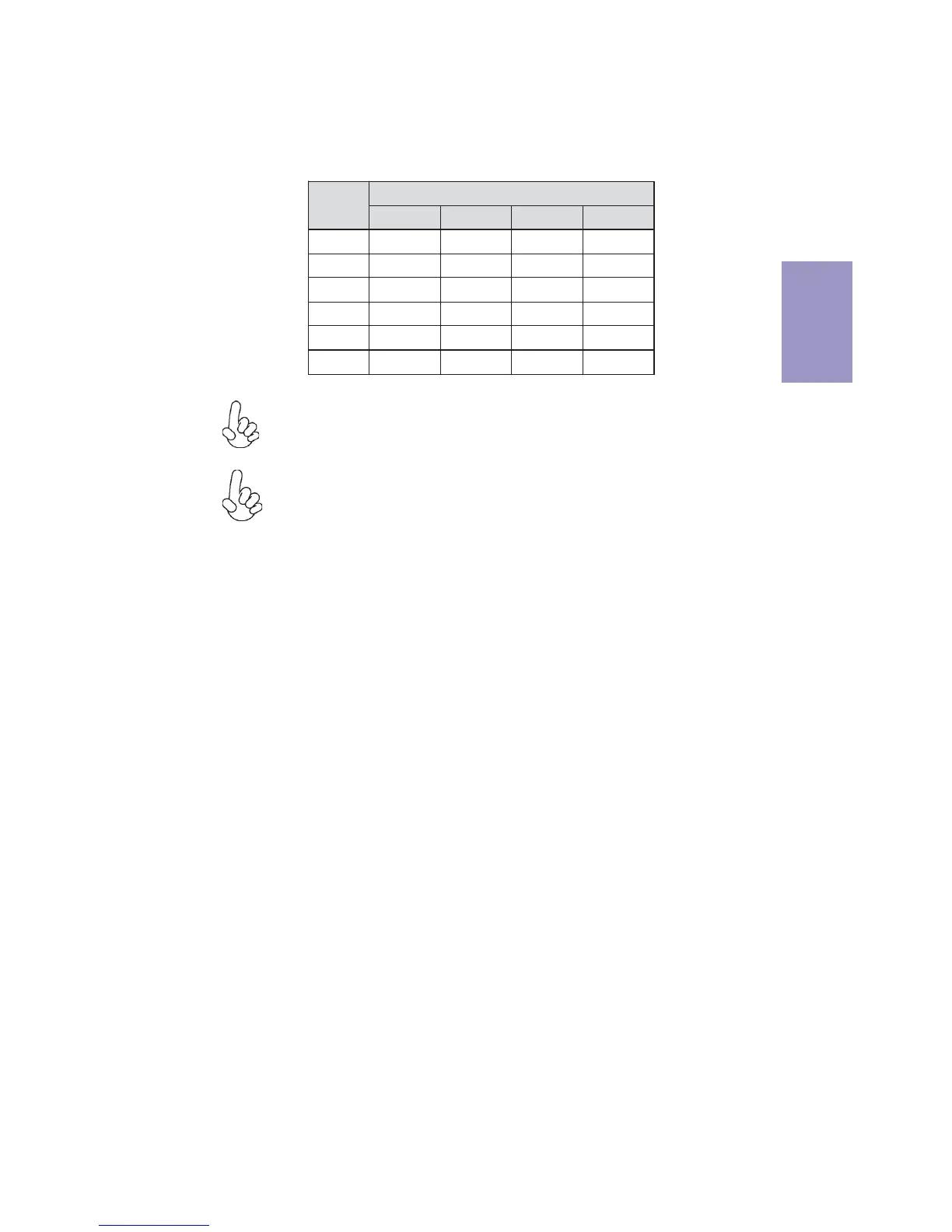 Due to Intel CPU spec definition, please follow the table above for