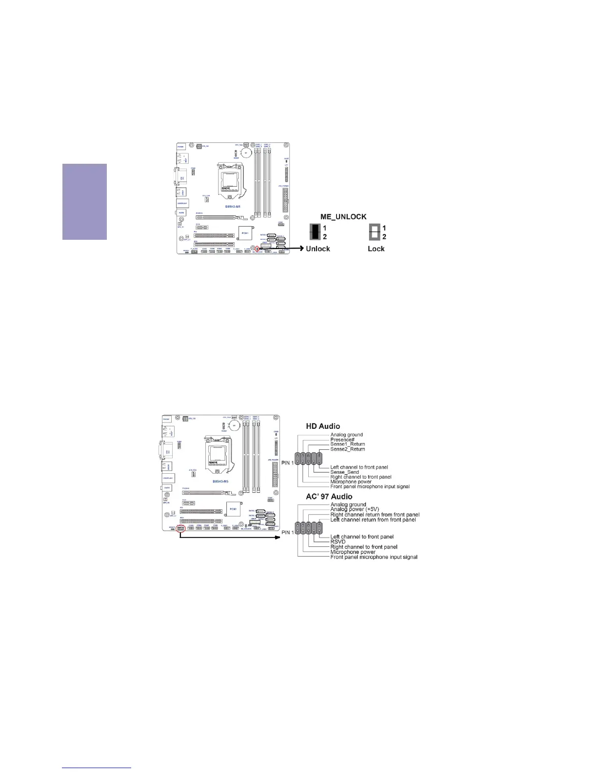 default. If you want connect an AC’ 97 front panel audio to HD onboard headers,