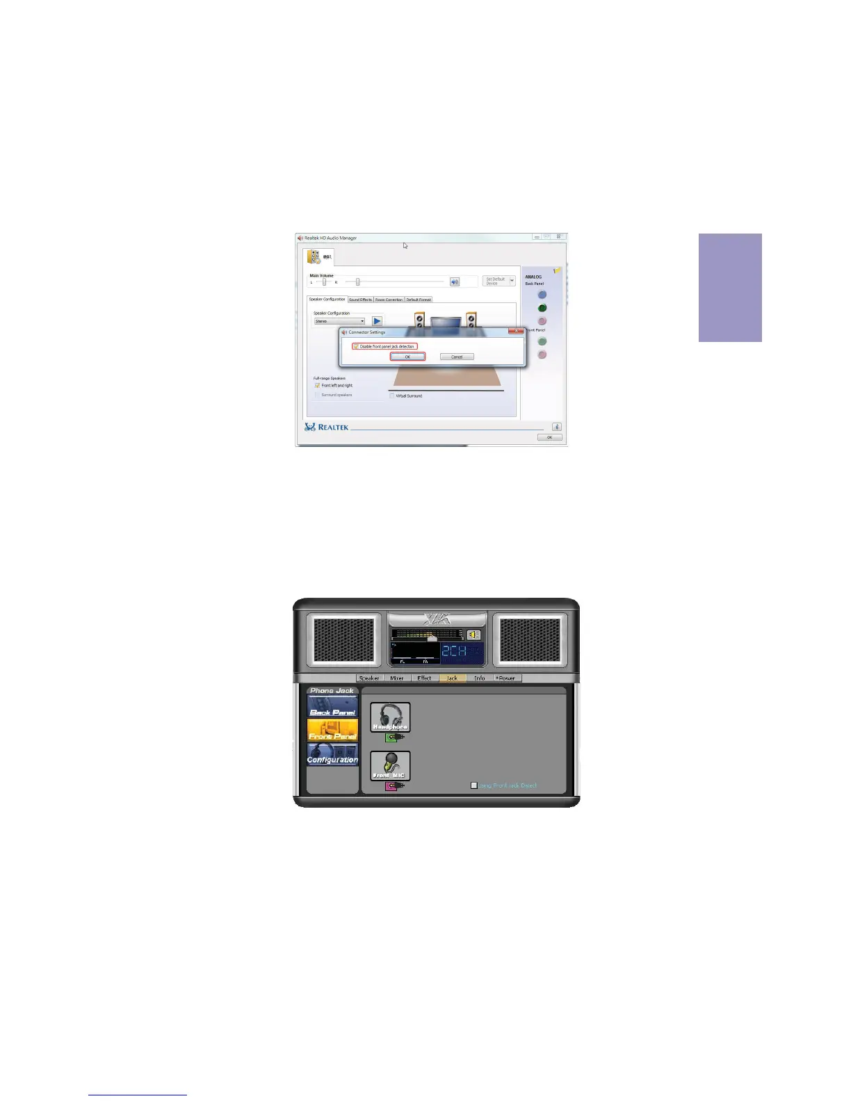 If you use AC’ 97 Front Panel, please don’ t tick off “Using Front Jack Detect ”. If you