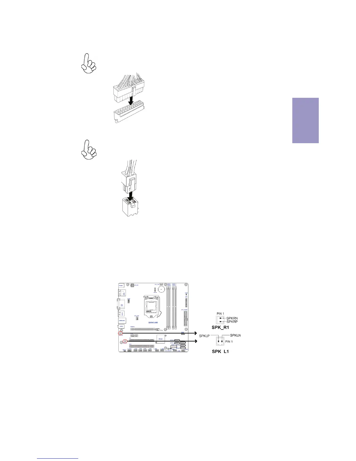 Connect the case speaker cable to SPK_R & L.