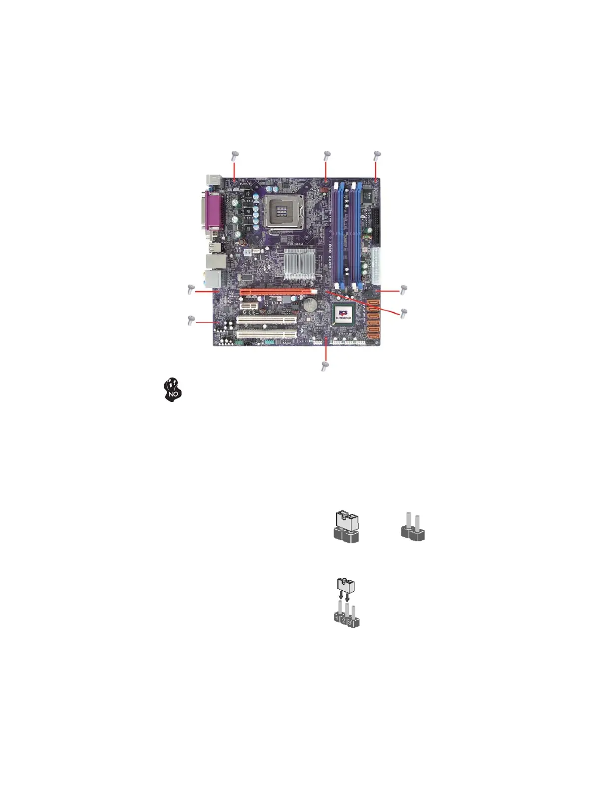 Do not over-tighten the screws as this can stress the motherboard.
