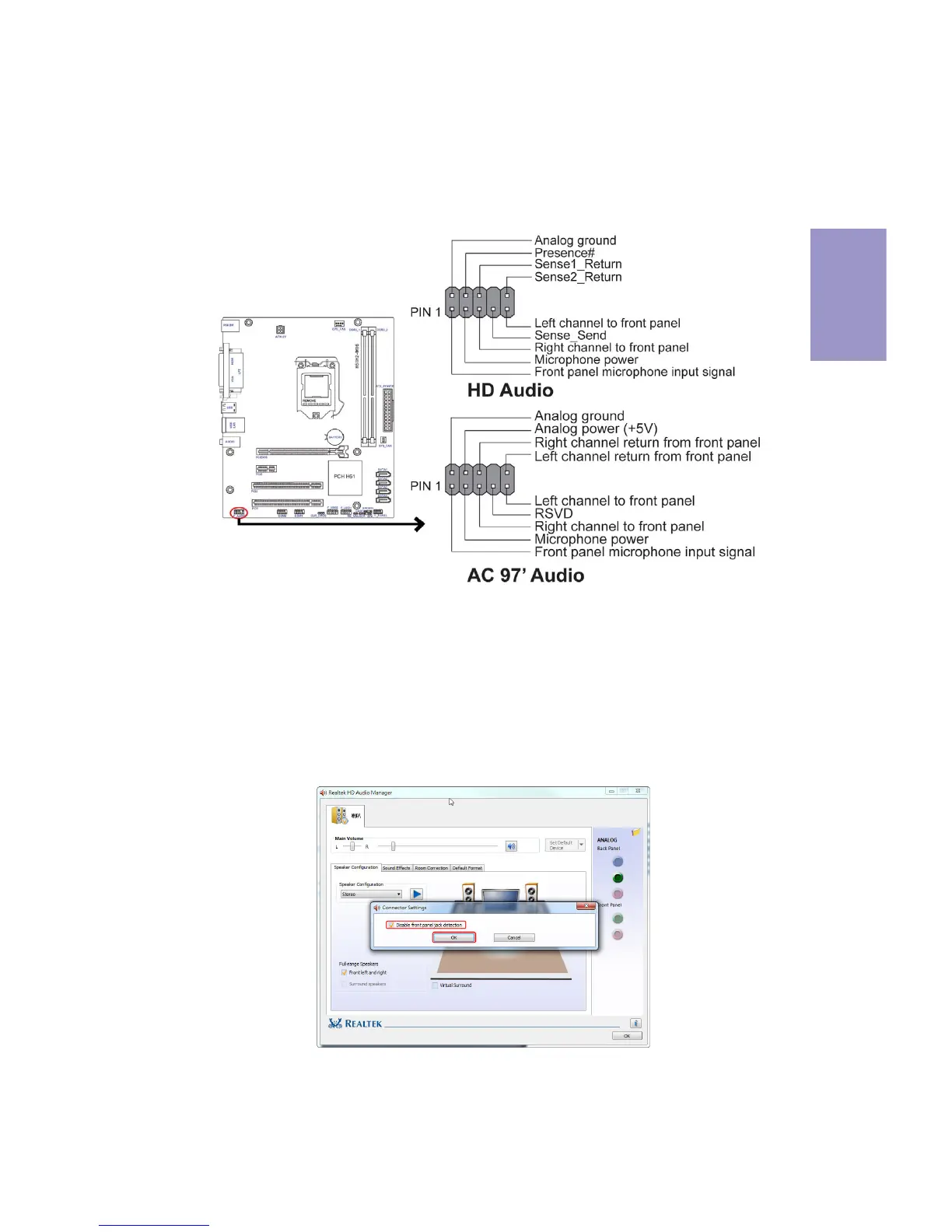 AC’ 97 Audio Configuration: To enable the front panel audio connector to sup-