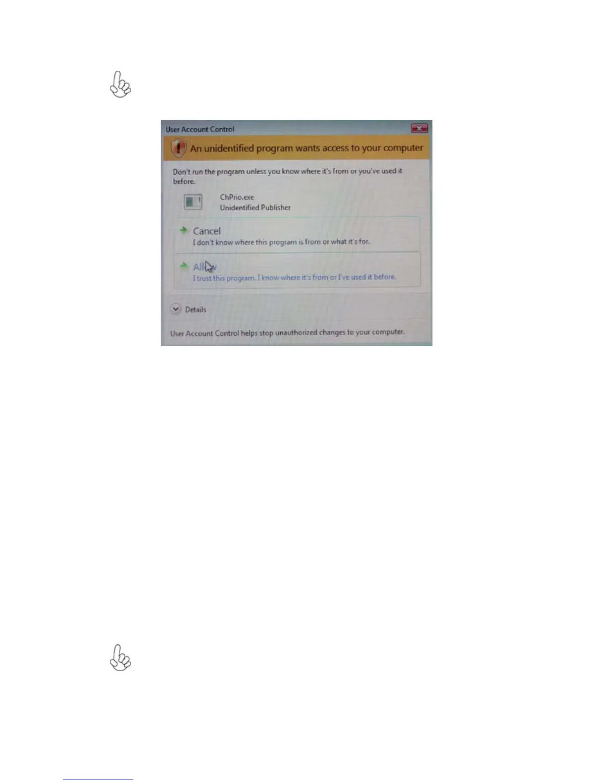 Windows Vista/7 will appear below UAC (User Account Control) message