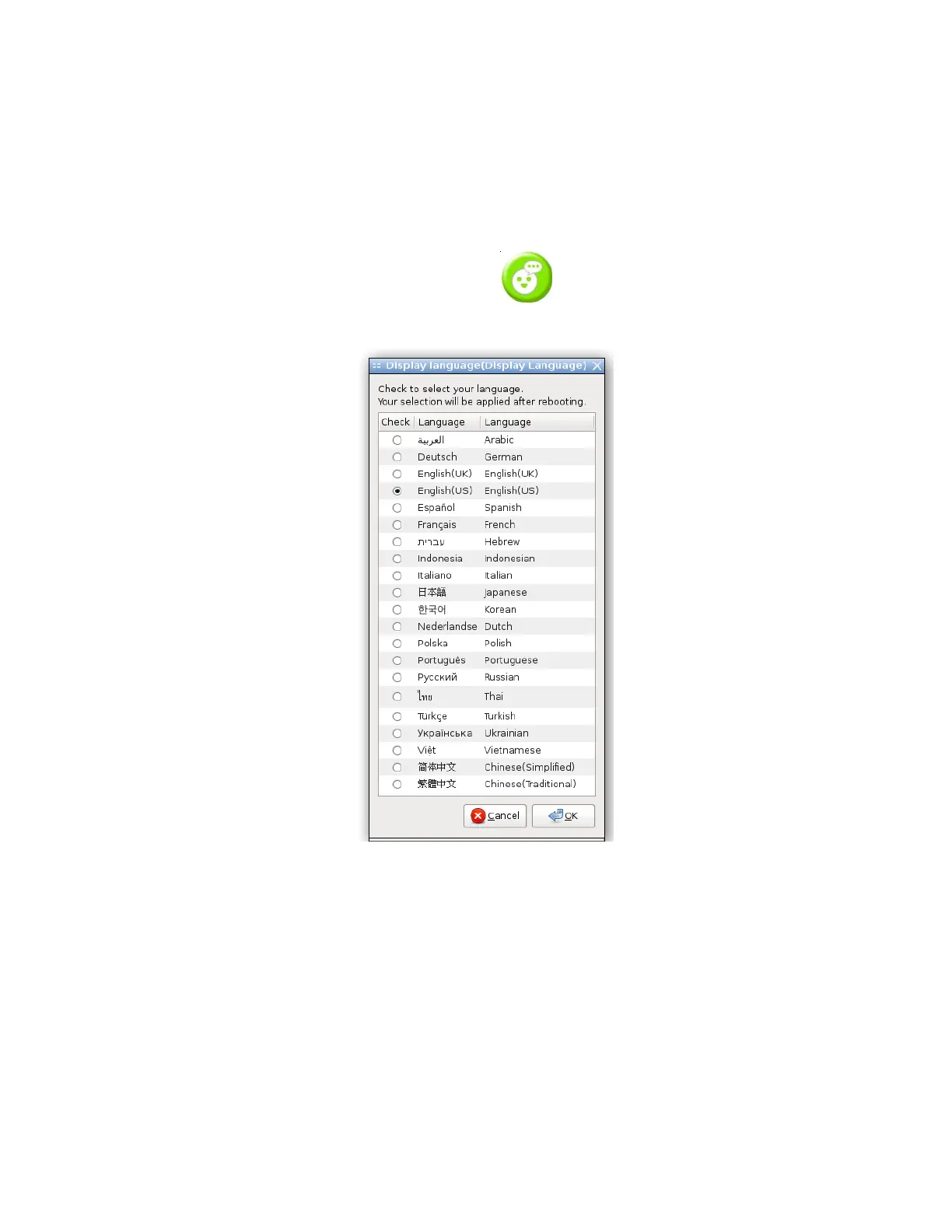 list. Check your desired display language. Your selected display language will be