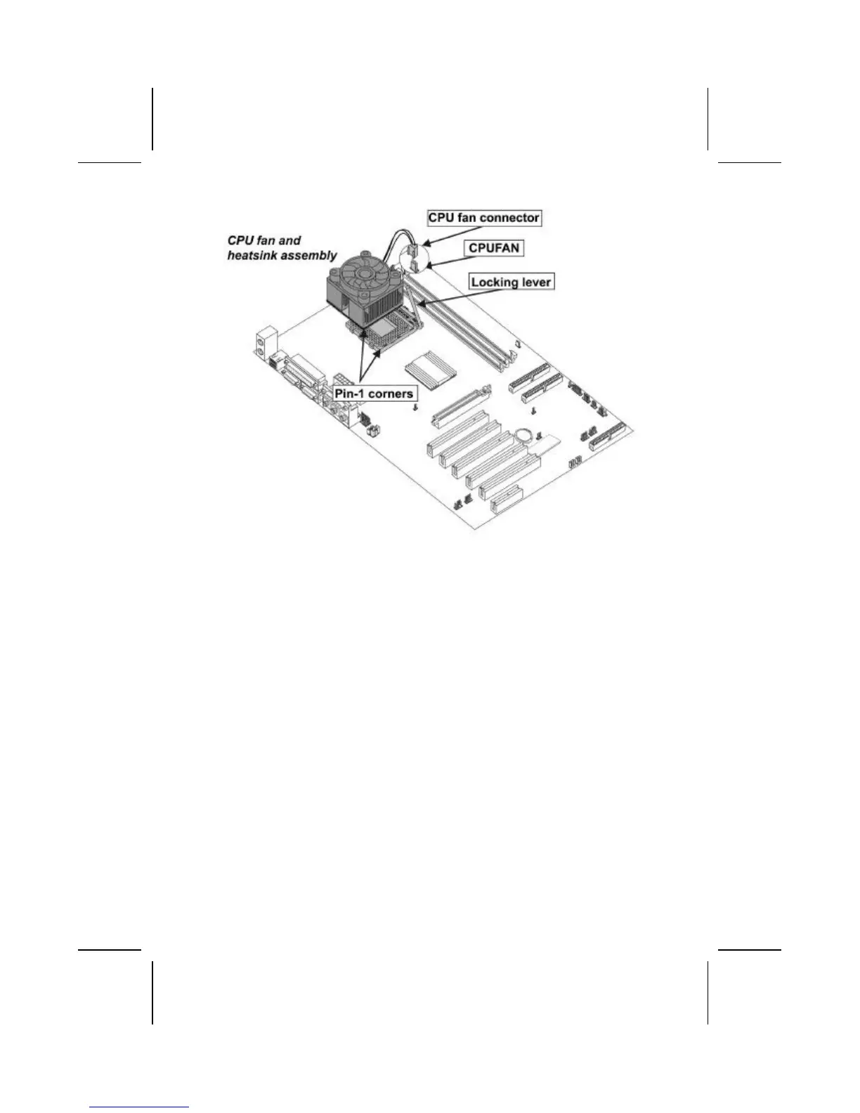 6. Lower the CPU fan/heatsink unit onto the CPU and