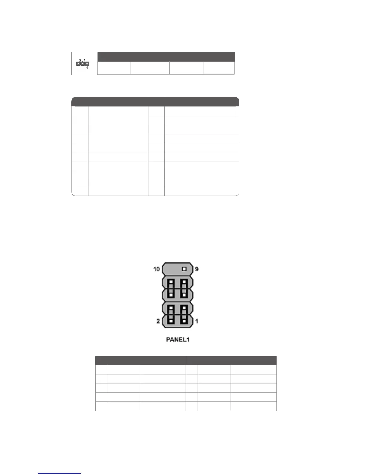 The front panel header (PANEL1) provides a standard set of switch and LED headers