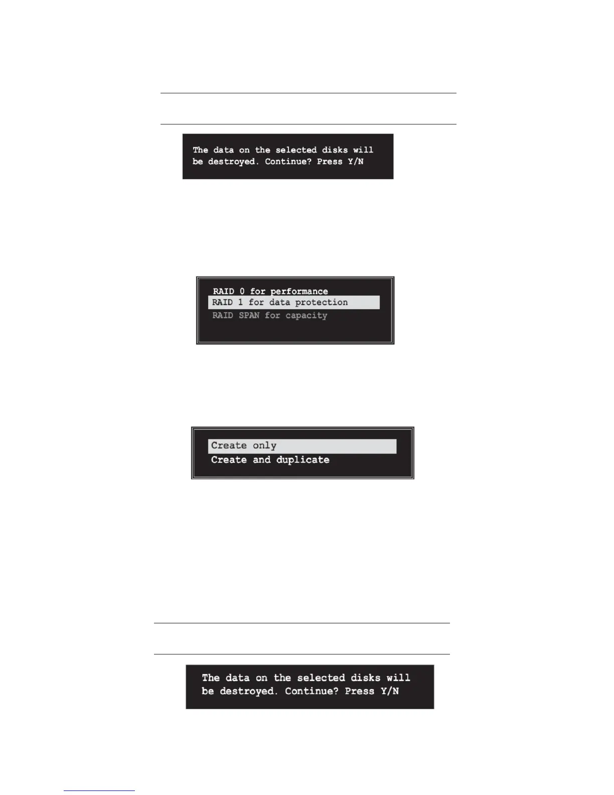 2 Select RAID 1 for data protection from the menu and press <Enter>. Select