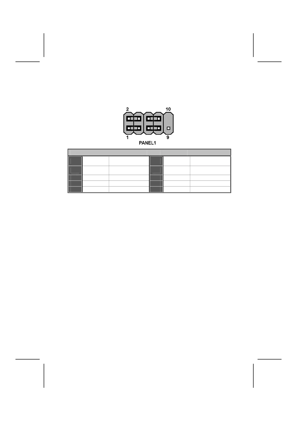 The front panel connector (PANEL1) provides a standard set of switch and