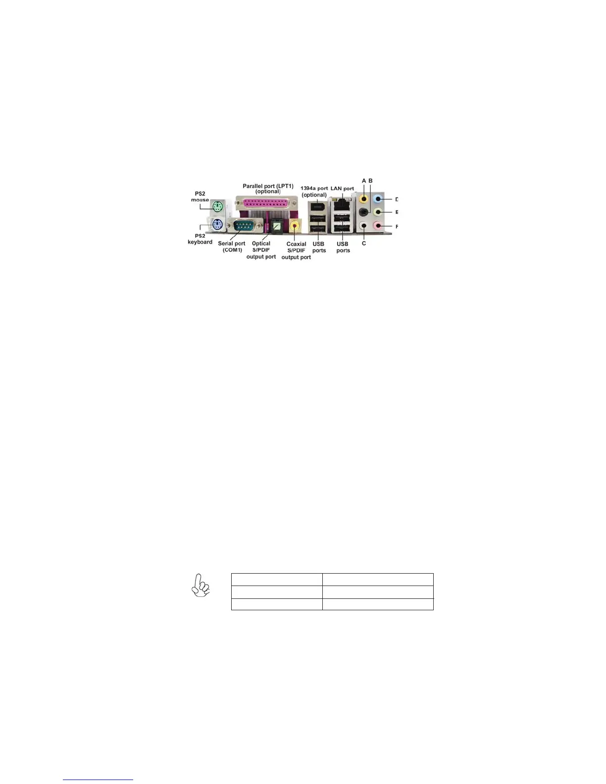 PS2 Mouse Use the upper PS/2 port to connect a PS/2 pointing device.