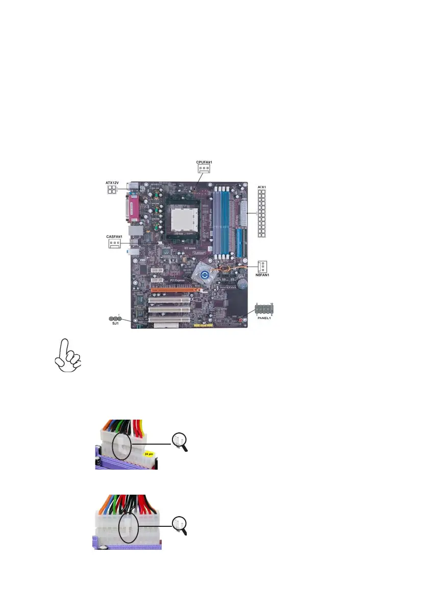 5 Connect the standard power supply connector to ATX1.