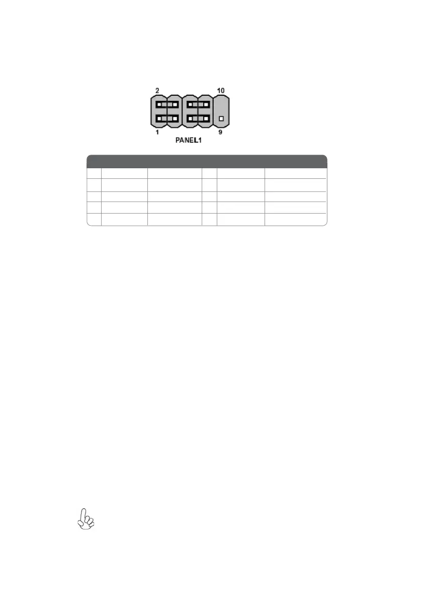 The front panel header (PANEL1) provides a standard set of switch and LED headers