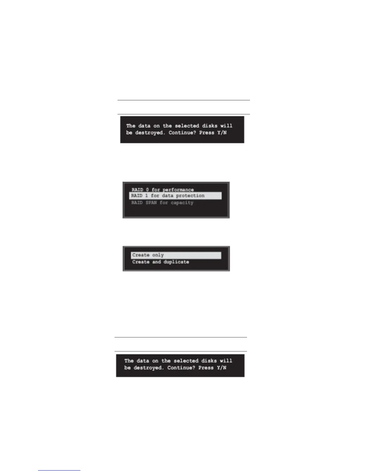 2 Select RAID 1 for data protection from the menu and press <Enter>. Select