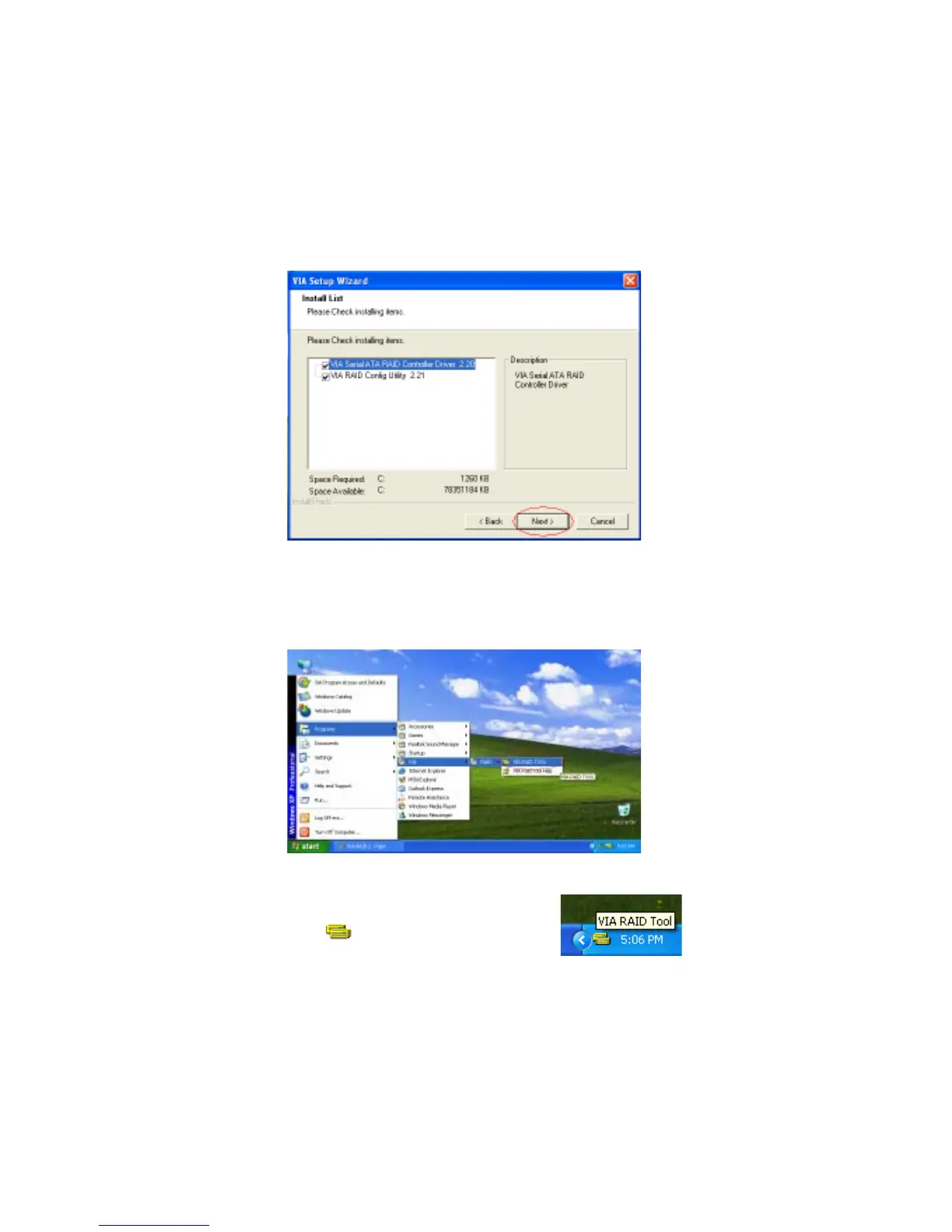 Once the installation is complete, go to Start---> Programs---> VIA---> raid_tool.exe to