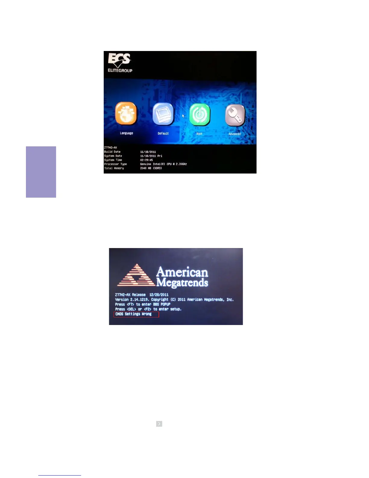 Wrong” message. This standard message will appear following a clear CMOS data