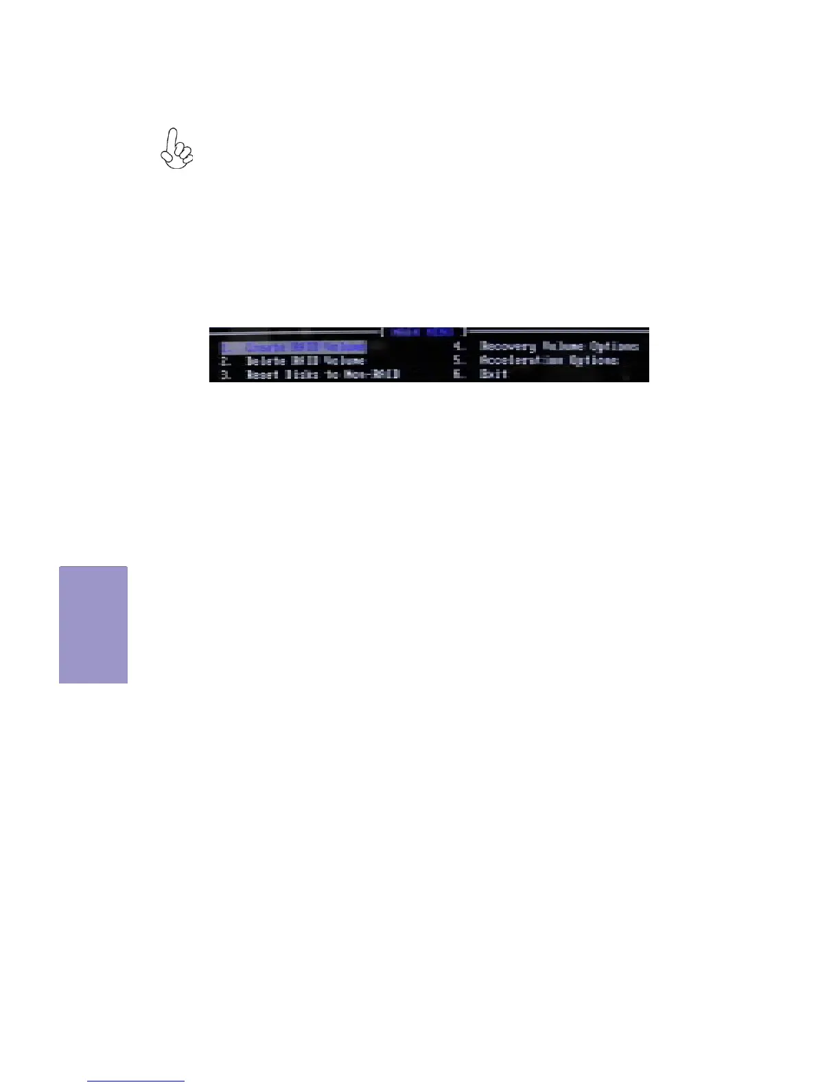 Matrix Storage Manager RAID BIOS menu, highlight Reset