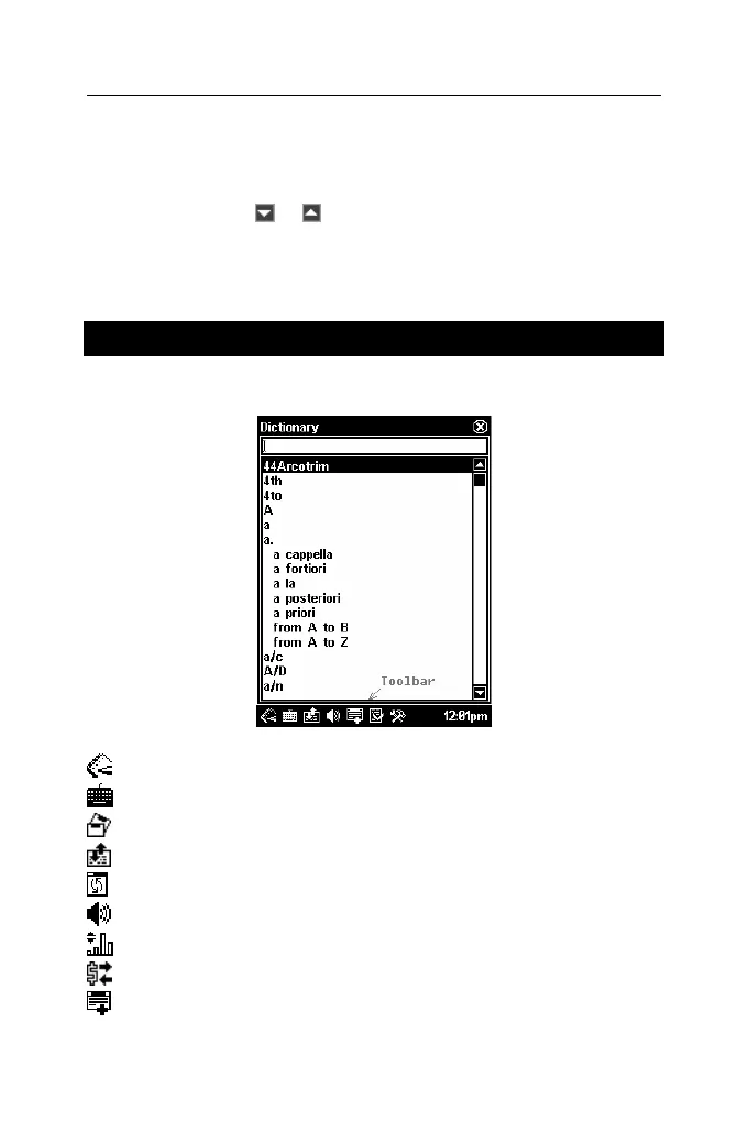 Toolbar buttons have the following functions: