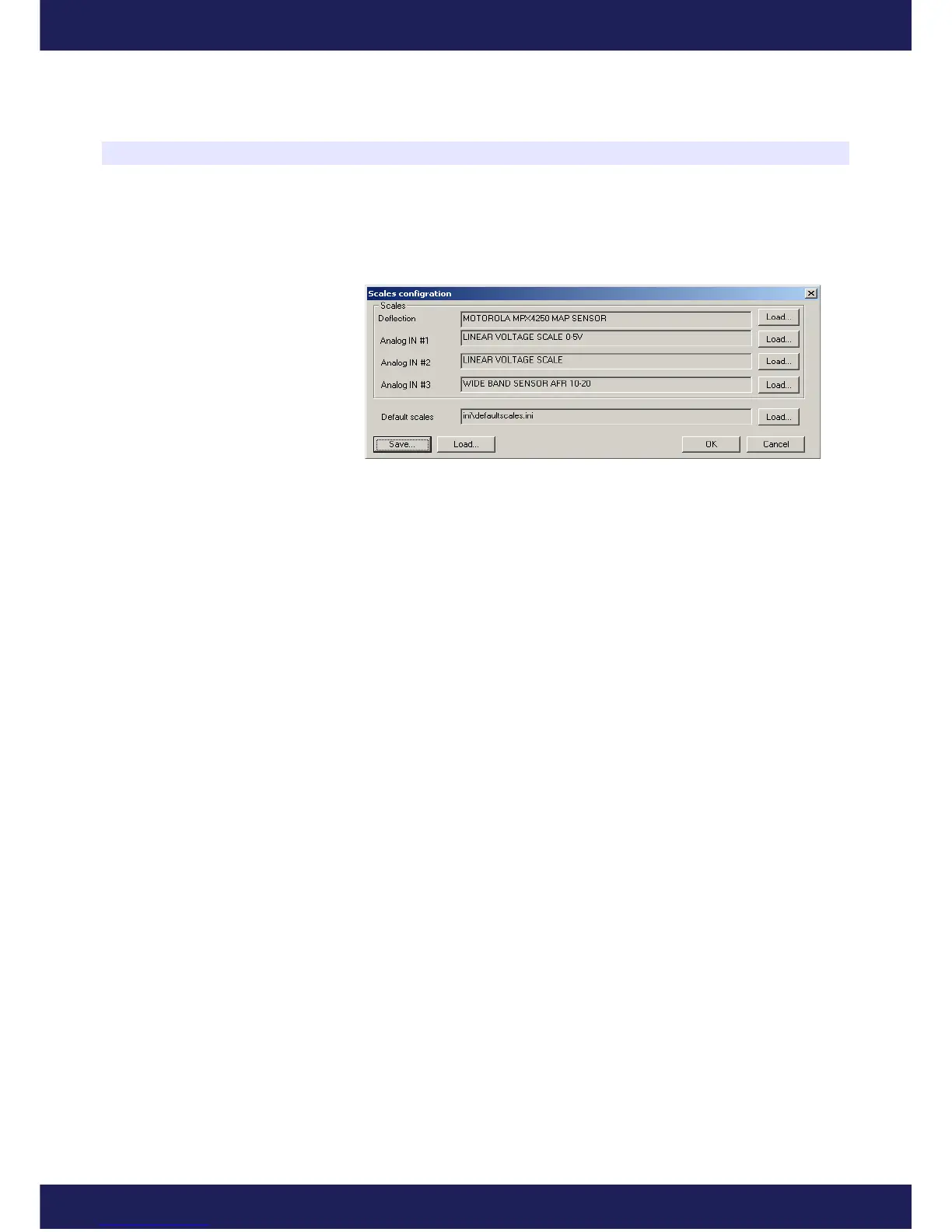 The chosen set of scales can be saved in a folder using the option Save. It is also possible to load a set of scales,