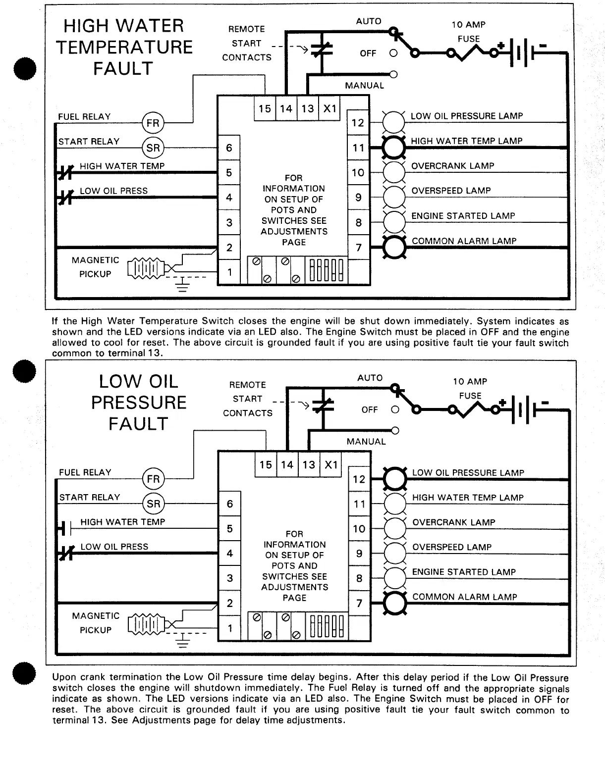 ECU ECU-57N - High Water Temperature Fault; High Water Temp Shutdown; Low Oil Pressure Fault; Low Oil Pressure Shutdown
