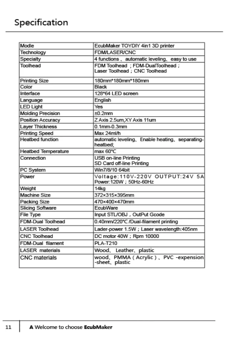 EcubMaker TOYDIY - Specification