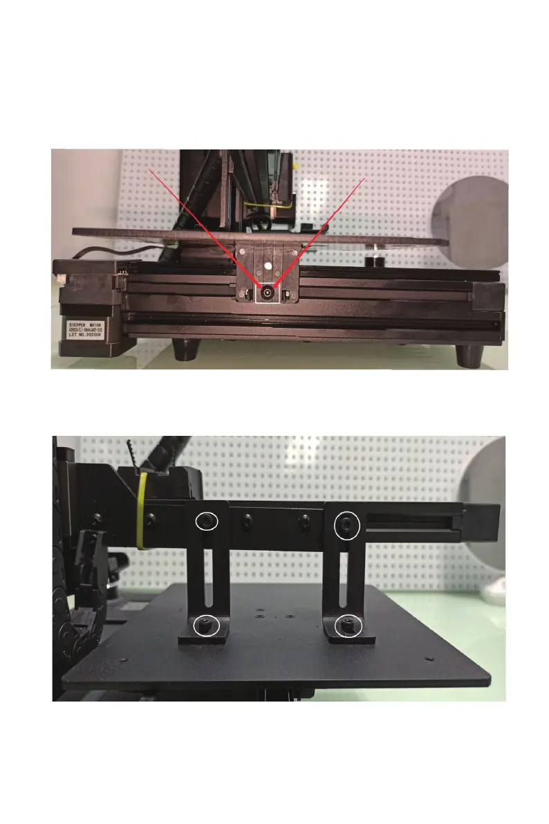 guide rail and four screws on the printing base plate).