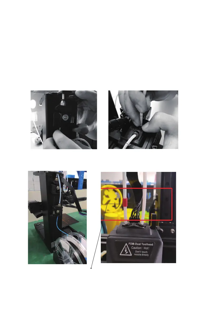 (1)Insert filament tube into the interface between the extruder and the FDM