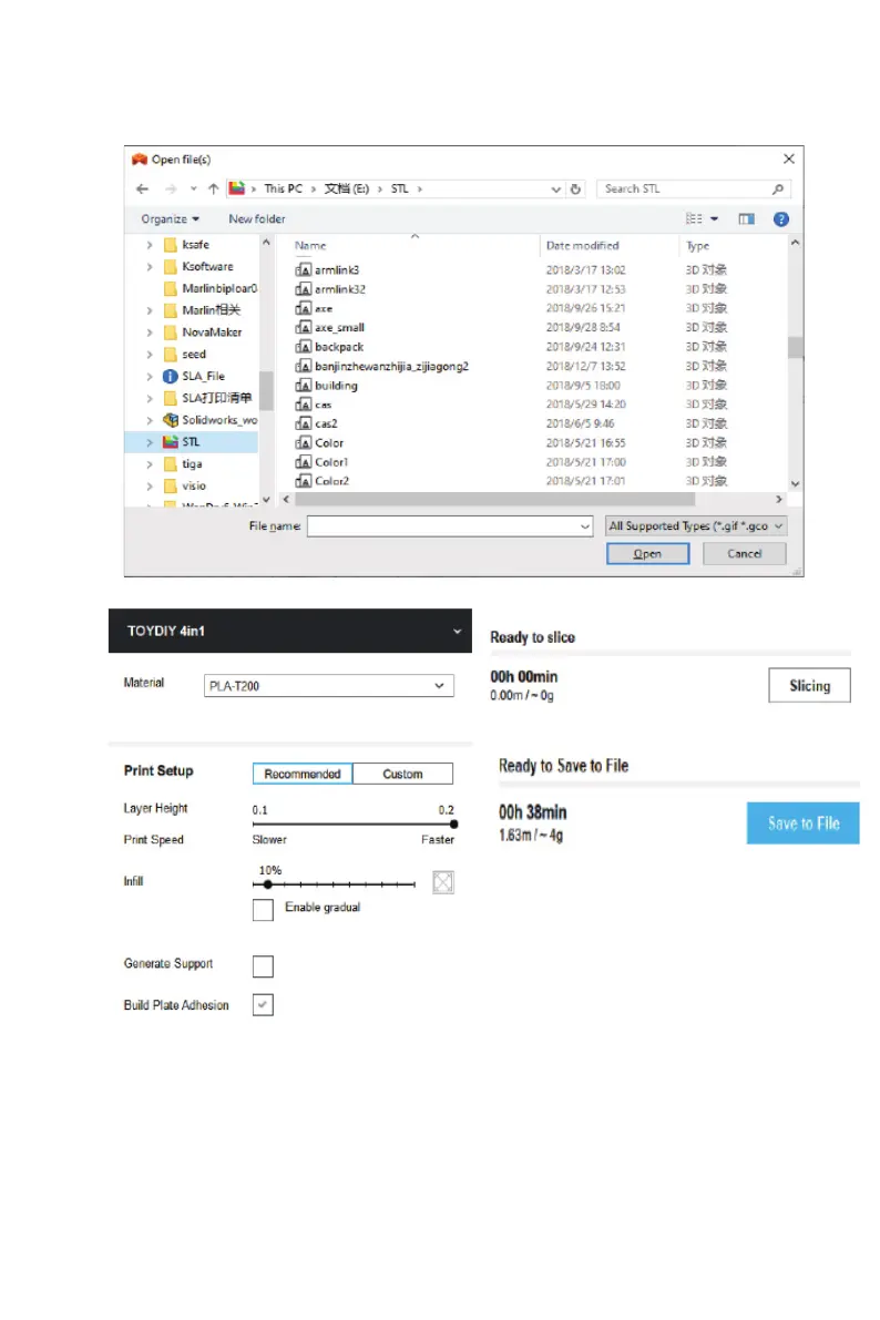Click the "slicing" button to slice. Then, save the generated Gcode le into
