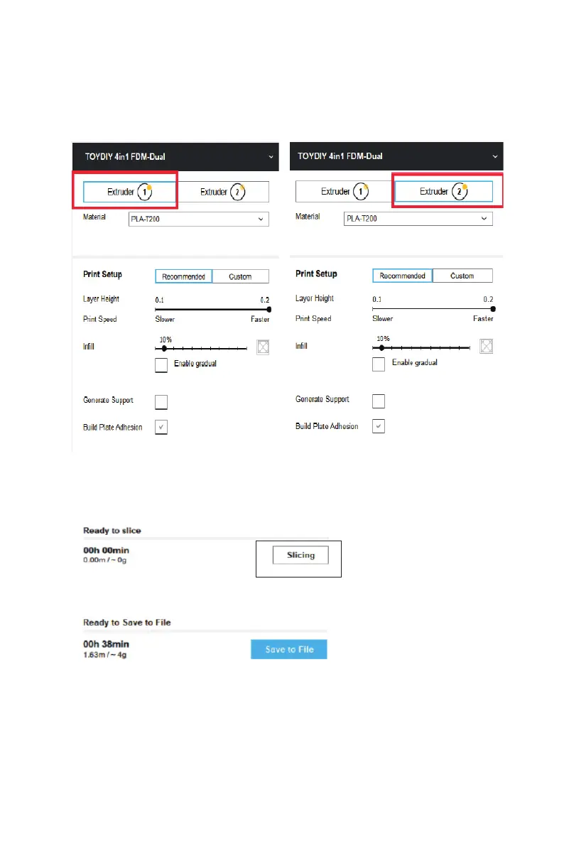Click the "slicing" button to slice. Then, save the generated Gcode le into