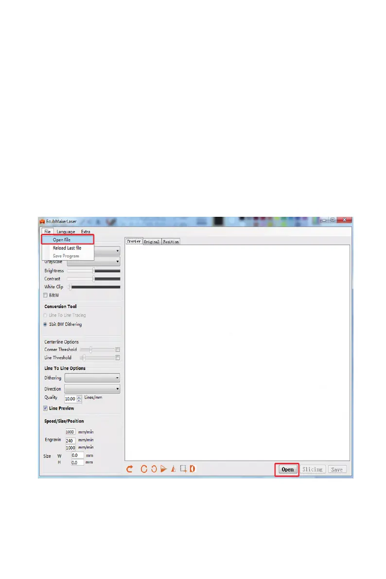 Import: Import picture les; Slice: Transform graphics into gcode les recognized by macine;