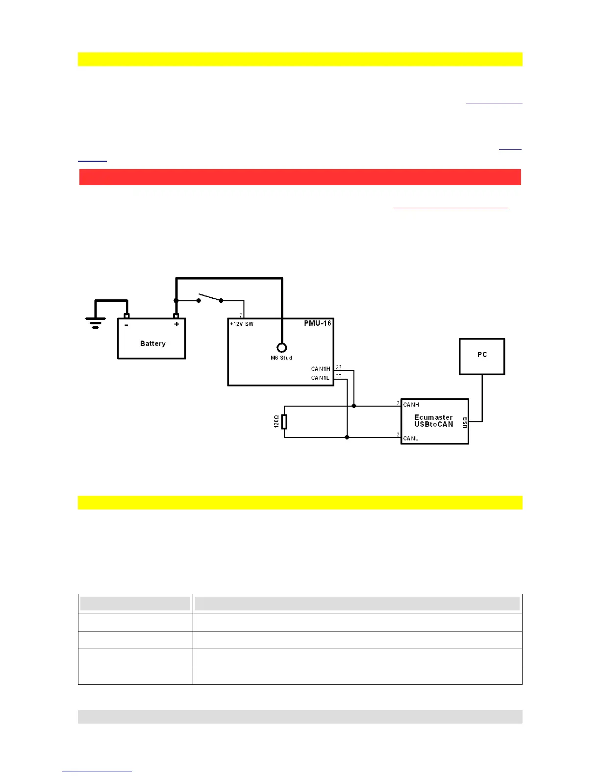 To connect PMU to PC, CAN1 CANbus must be used. This is the CAN provided for us for PC