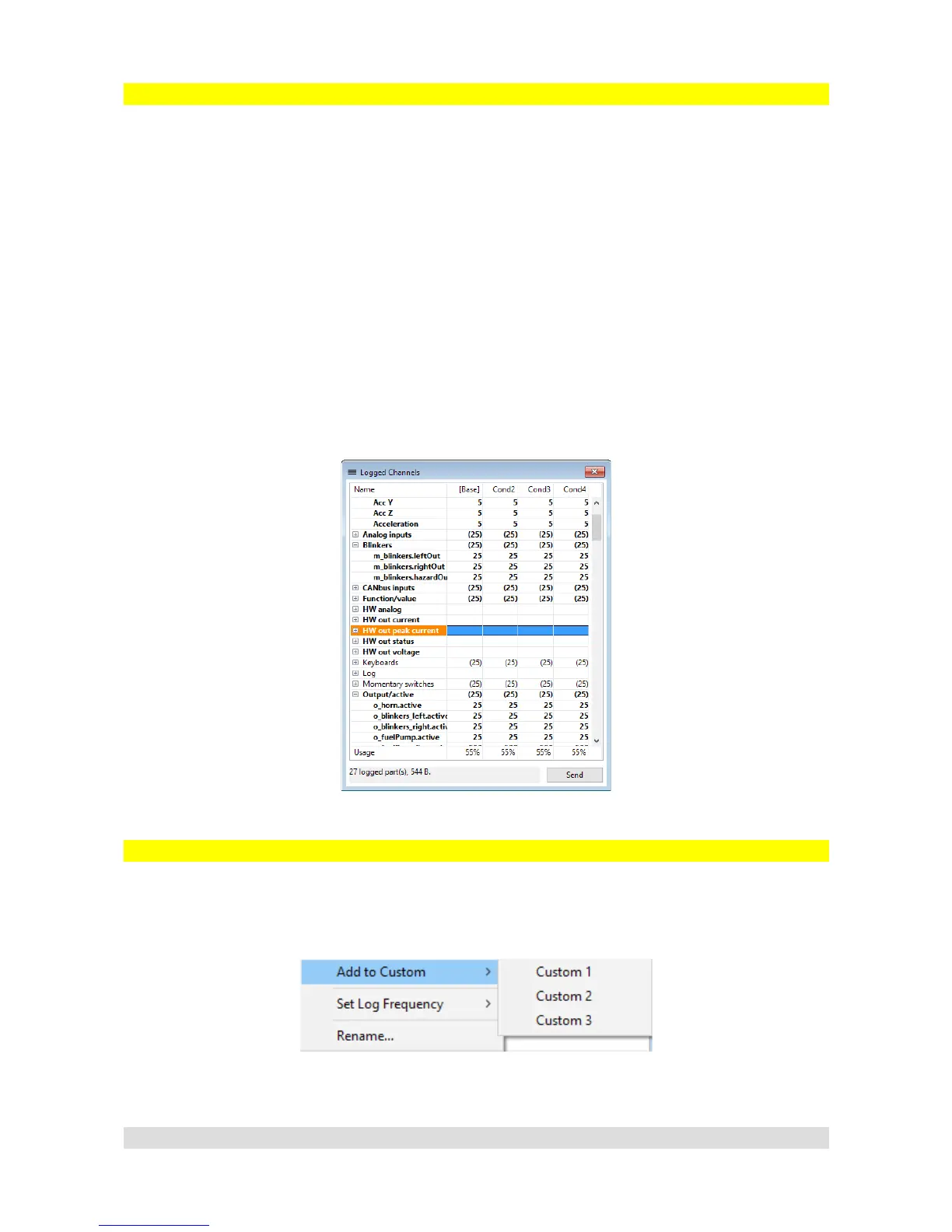 custom log (Tree View → Custom1, Custom2, Custom3). To add channel to custom group, press