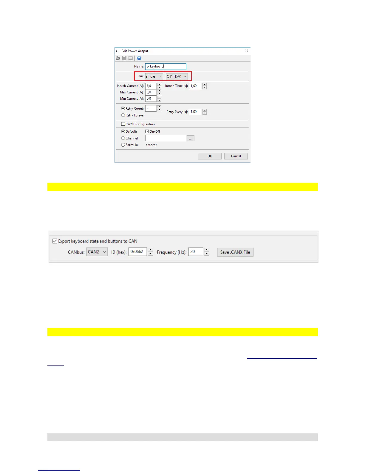 Power Output configuration for CANbus Keyboard: